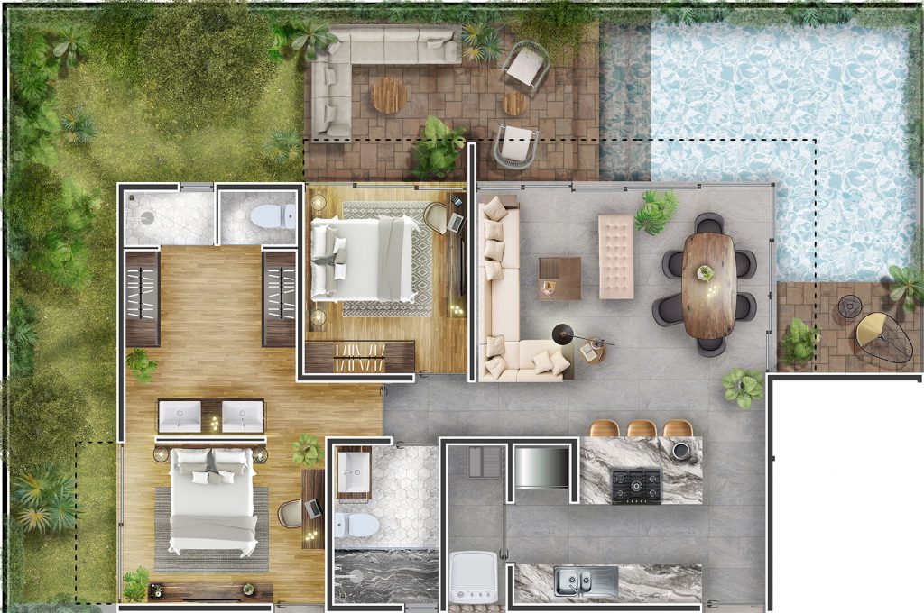 Tu hogar en el paraíso, rodeado de la naturaleza, conectando con nuestro origen y arquitectura ancestral.